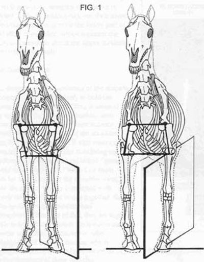 These diagrams represent the "knee" (carpus) joint, but the principle can be applied to any of the joints from shoulder or hip downward in either the fore or the hind limb