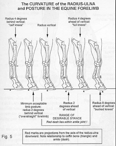 Radius 8 degrees ahead of vertical: "bucked knees"